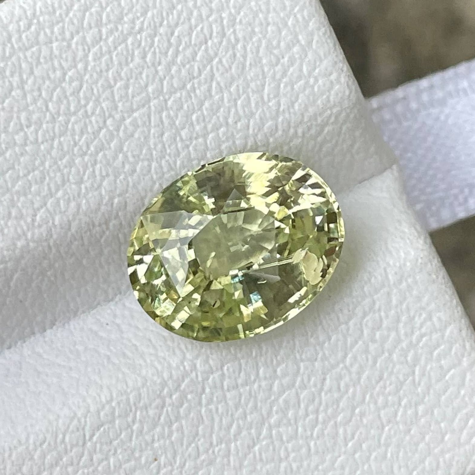 This stunning 4.99 carat yellow sapphire is a natural gemstone sourced from Sri Lanka, renowned for its high-quality sapphires. The stone is cut in an elegant oval shape, which enhances its brilliance and highlights its vibrant golden-yellow hue. Its remarkable clarity and radiant color make it a true statement piece, capturing light beautifully from every angle. As a symbol of wisdom, prosperity, and good fortune, this sapphire carries deep cultural and astrological significance. Its natural origin and enhanced quality further add to its rarity and value, making it a prized possession for collectors and gem enthusiasts alike.