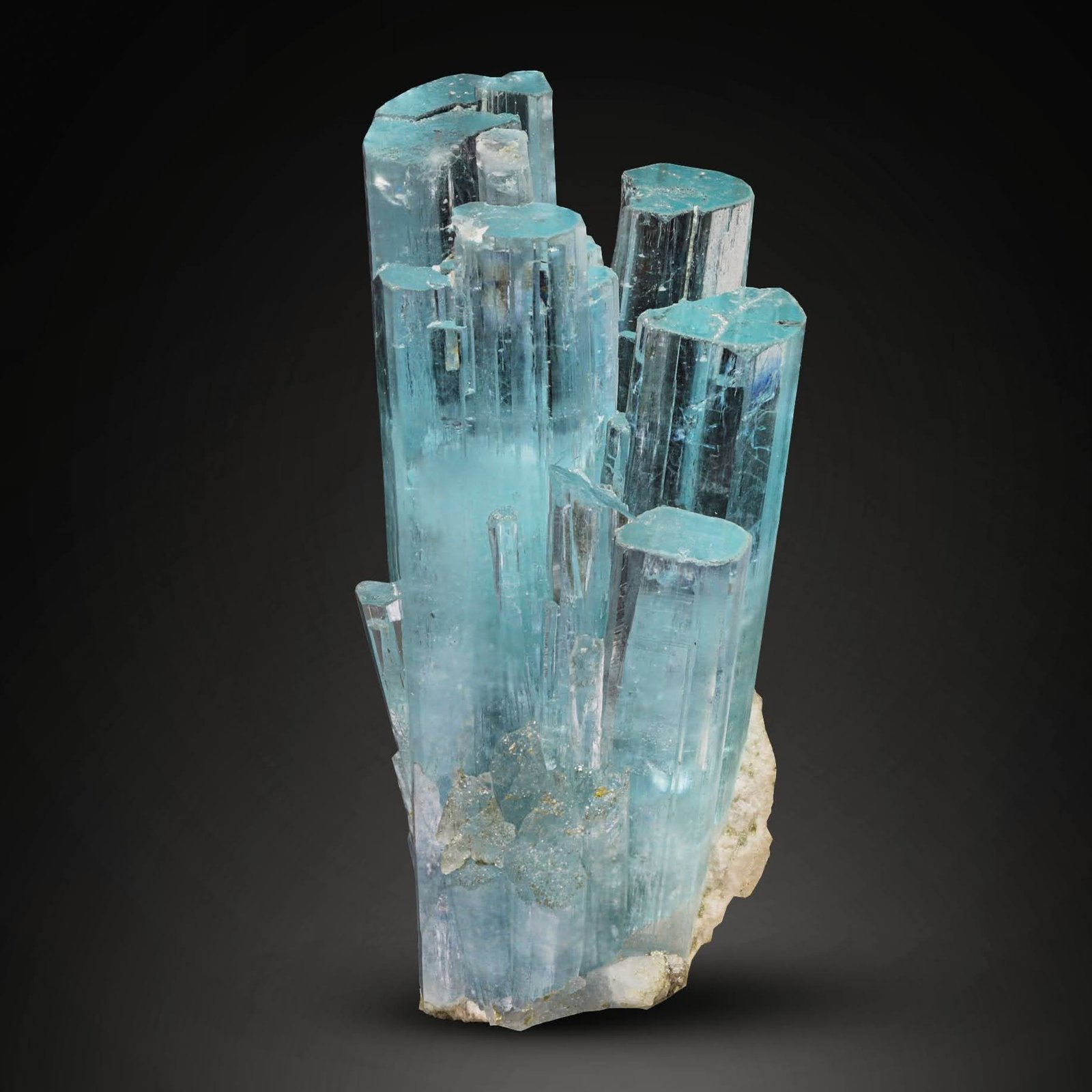 This stunning specimen from Pakistan features a breathtaking free-standing aquamarine crystal elegantly perched on a bed of pristine albite. The aquamarine, with its captivating sky-blue hue, rises majestically, showcasing its flawless transparency and perfectly terminated edges. The crystal's vibrant color contrasts beautifully with the milky white albite matrix, creating a visually striking and harmonious composition. This natural masterpiece not only highlights the exquisite beauty of aquamarine but also emphasizes the delicate interplay between the two minerals. Ideal for collectors and connoisseurs, this piece embodies the geological wonder and artistry found in nature's creations, making it a treasured addition to any mineral collection.